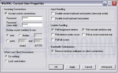 - •VNC Client II: Viewing in a Java Enabled Web Browser